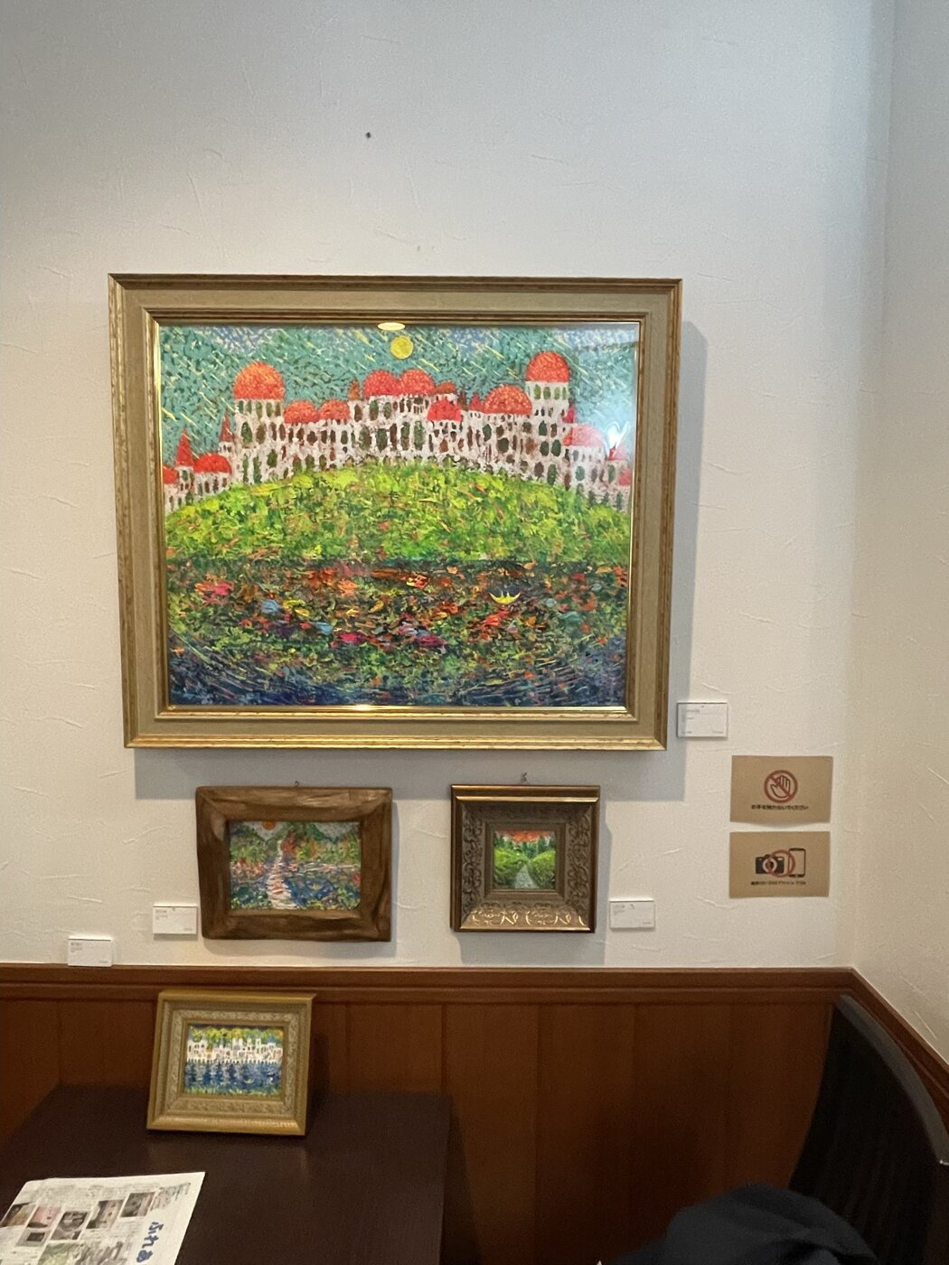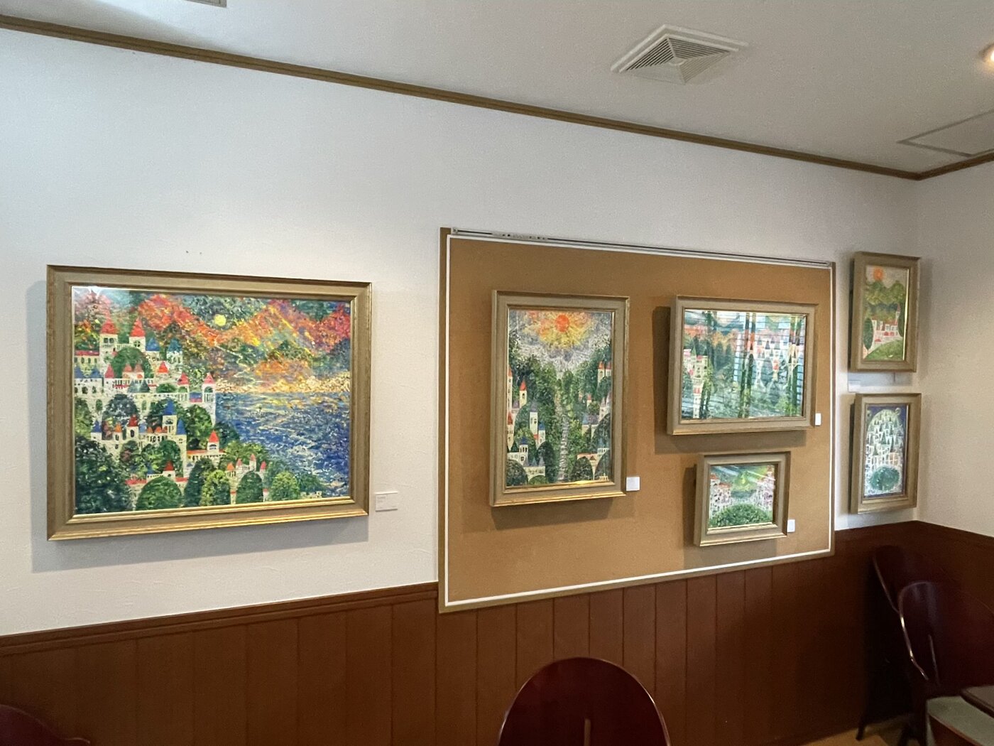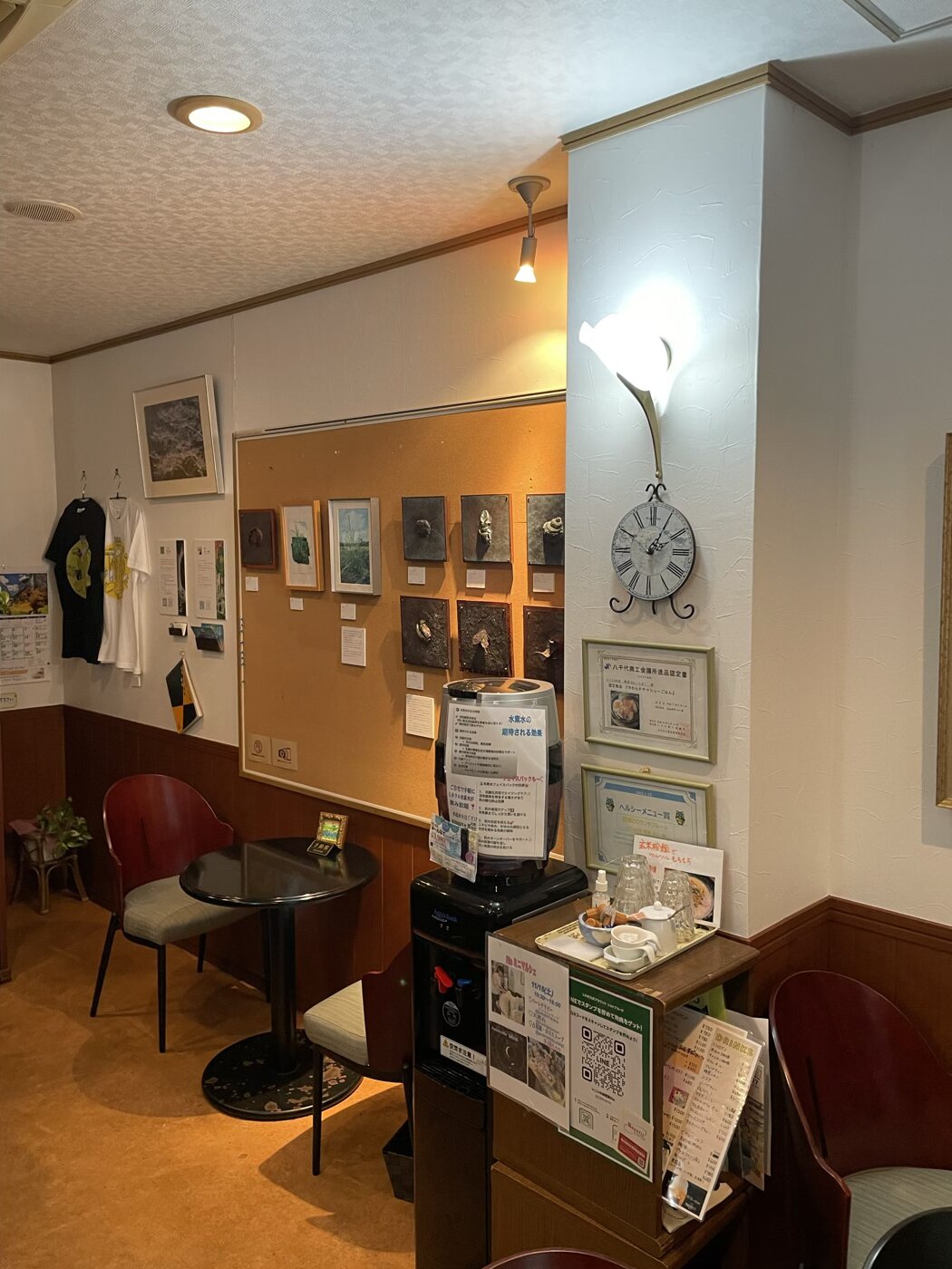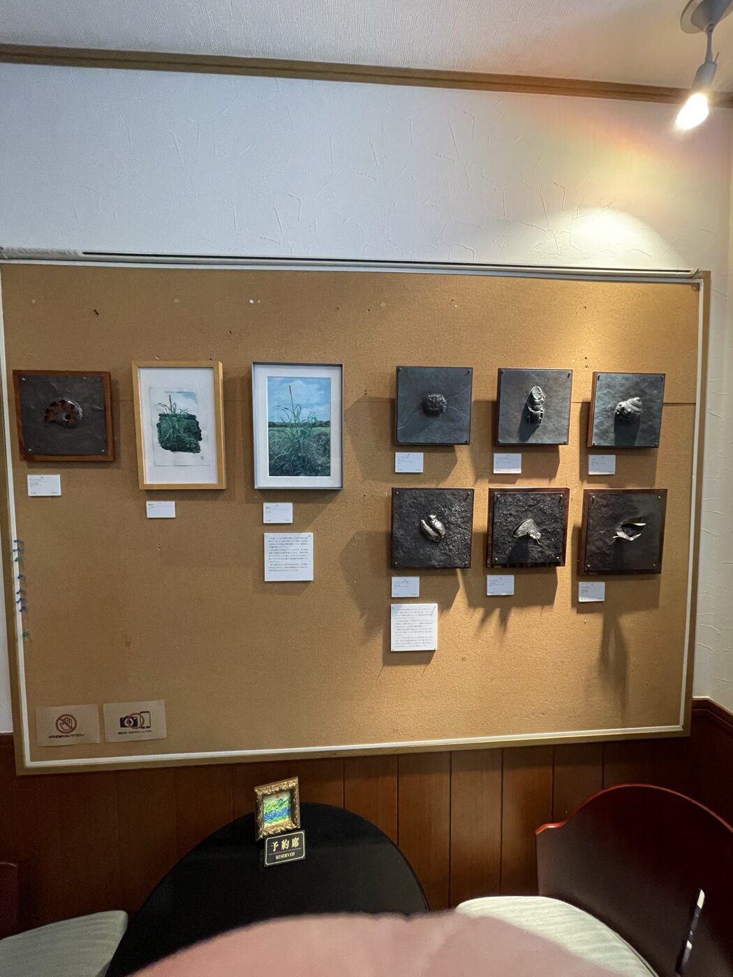 開店当初より、常時壁面にプロ〜アマの作品を展示してますので、お食事をしながら作品鑑賞をお楽しみ頂けます。